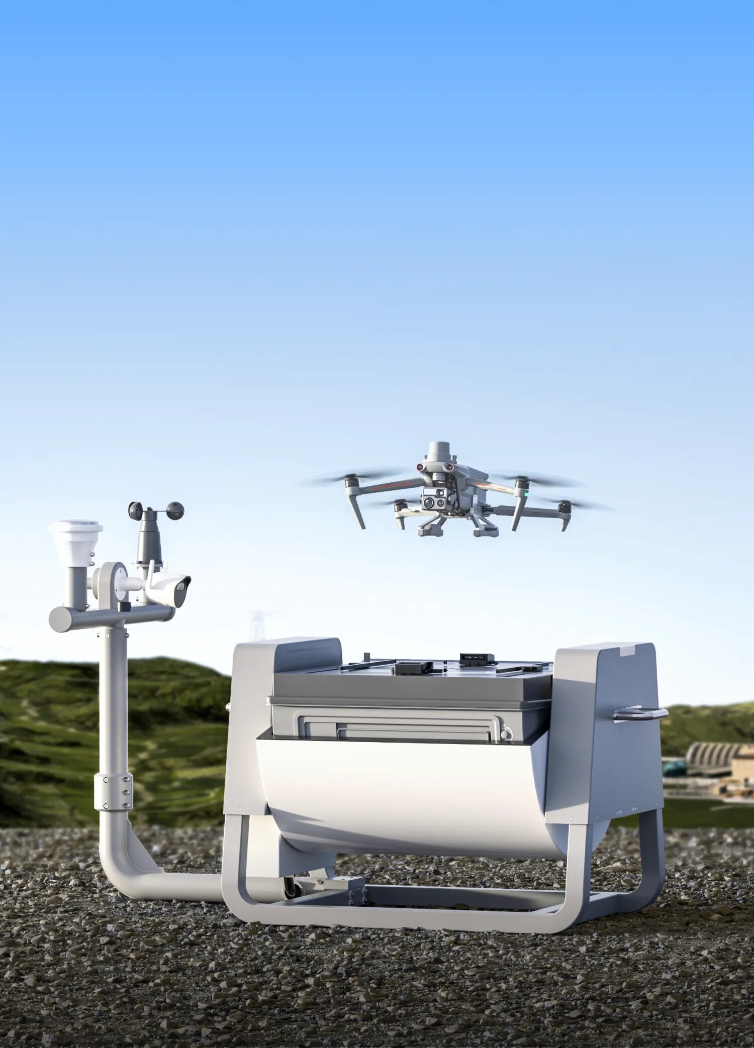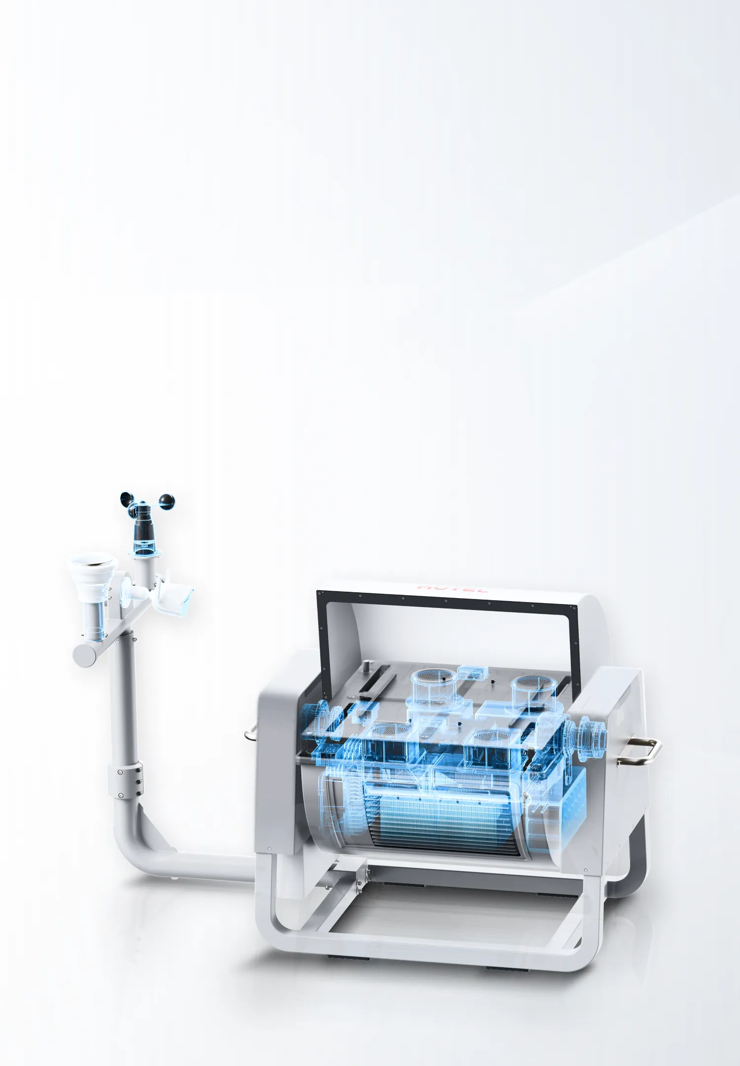 道通智能自主研发的全新旗舰级多旋翼无人机机巢,基于领先的平台软件和控制算法,可实现无人机自动起飞、自主巡检、精准降落、自动充电等功能。道通多旋翼机巢使用滚筒式防护罩,集成了气象站和工业控温空调,轻松应对全天候作业场景;采用轻量化功能模块集成理念,方便运输,易于部署,搭配道通天穹,作业人员足不出户即可下发任务指令,解放人工,降低成本,赋能无人机多行业应用。