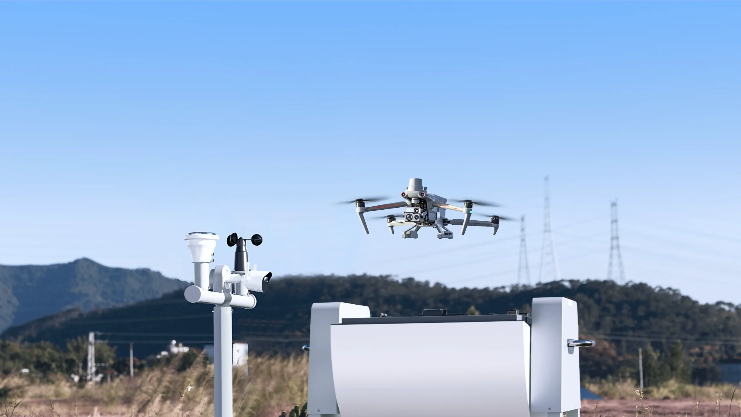道通多旋翼机巢集成了气象监视模块,依靠实时获取的天气数据保护无人机起降阶段的飞行安全,同时内置的工业级控温空调能够主动控温,始终为无人机电池提供适宜的充电环境温度,轻松实现全天候作业。